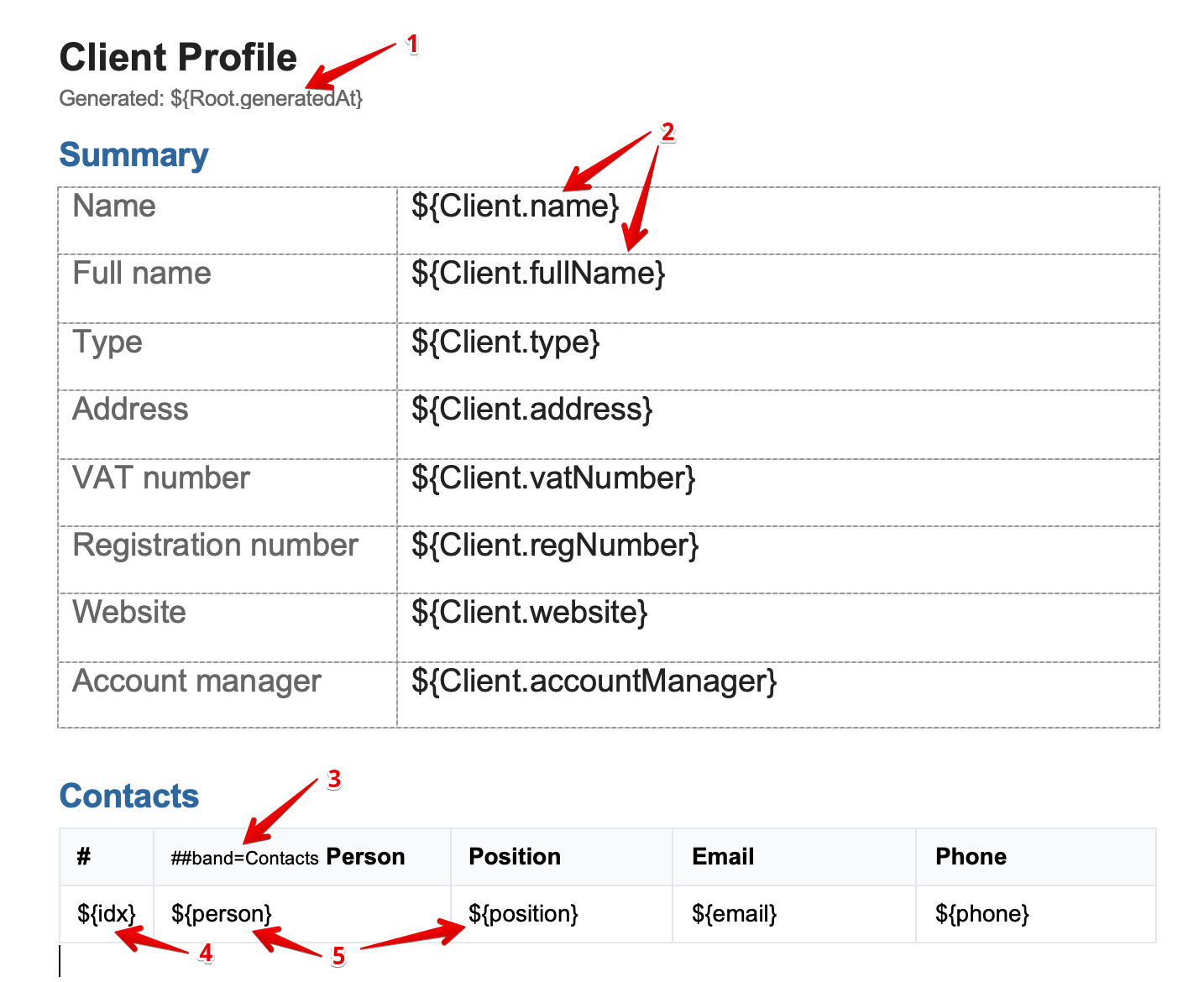 One of the Client Profile report templates is written in HTML. You can download the whole file from GitHub.