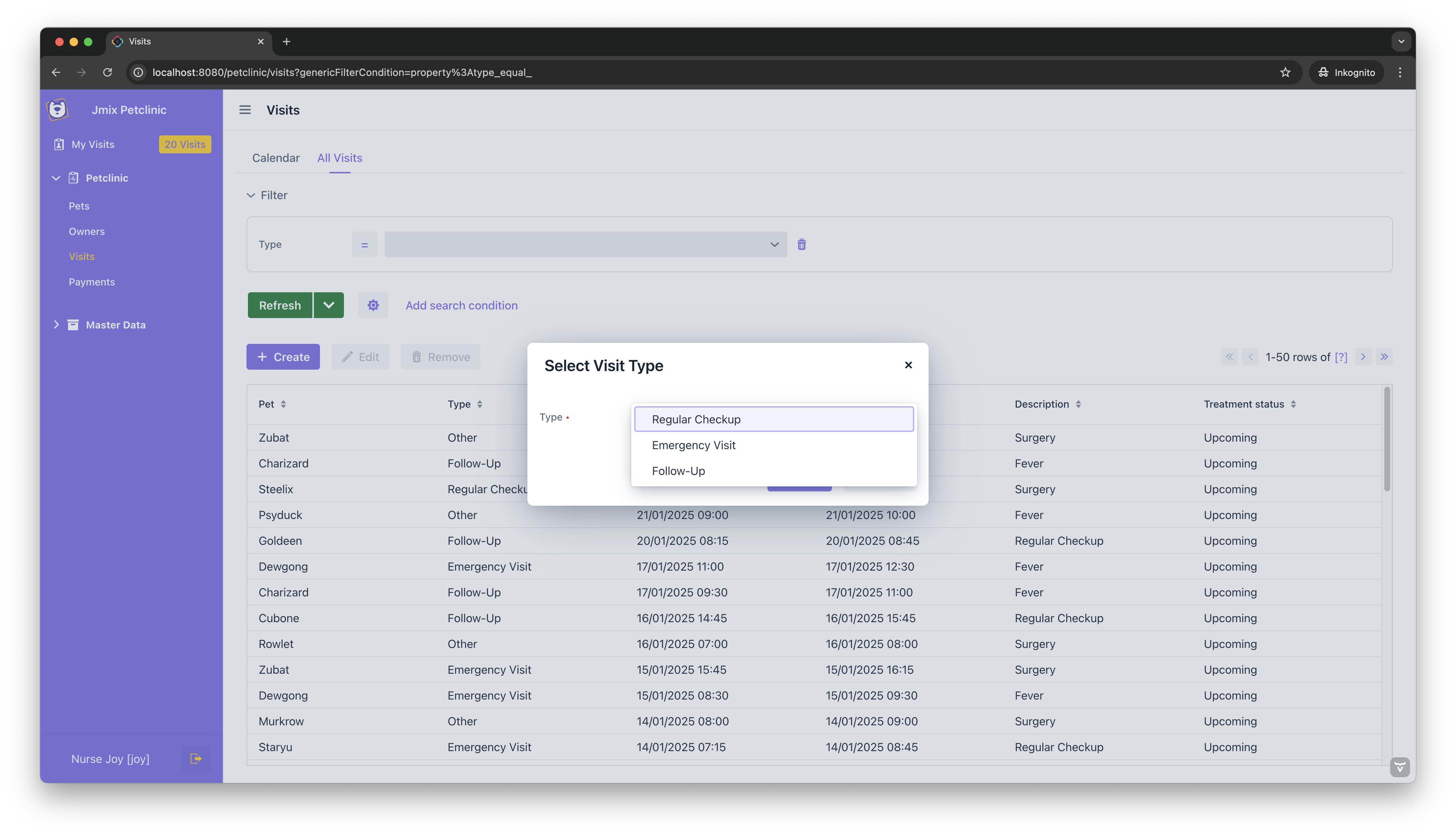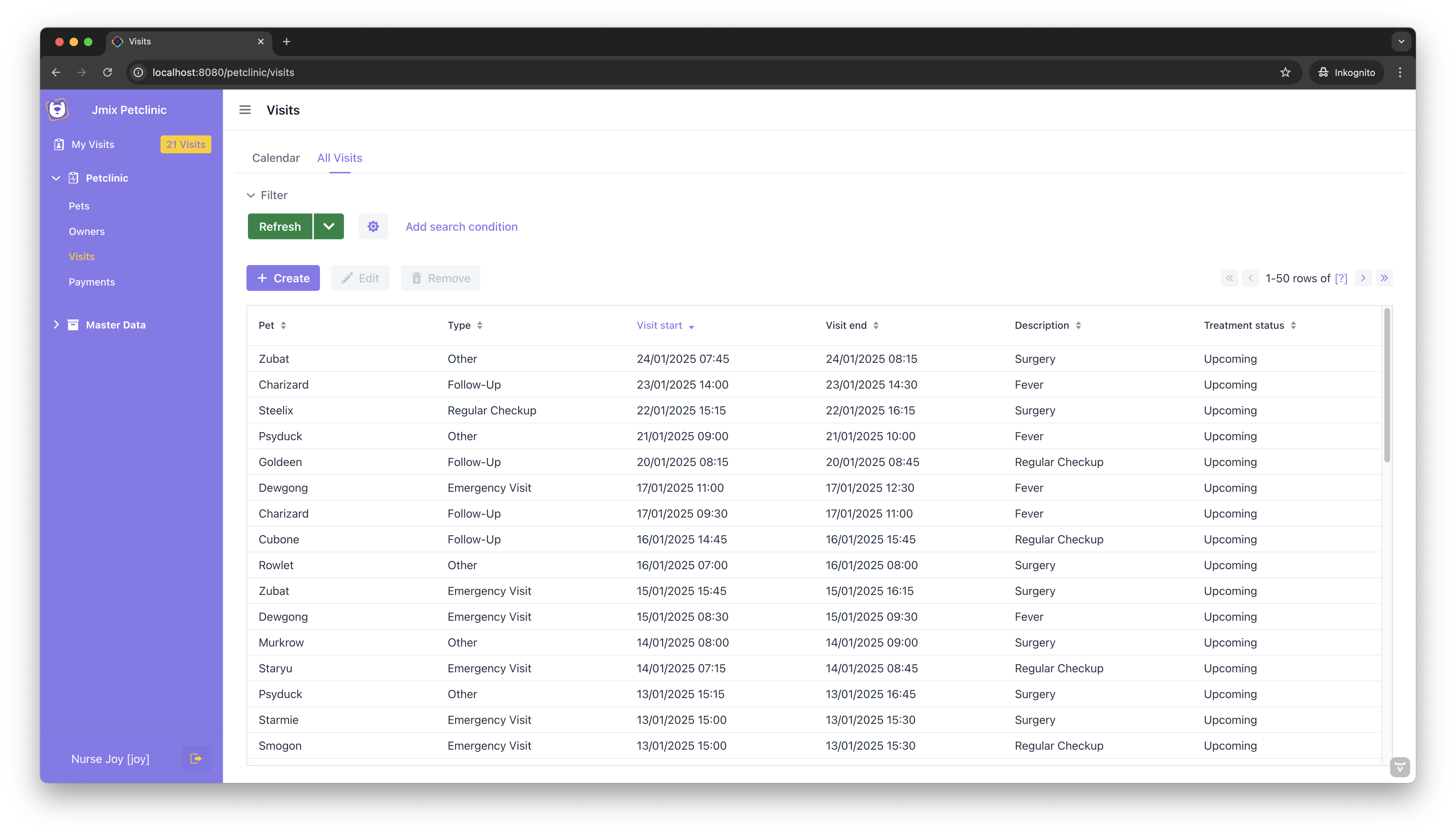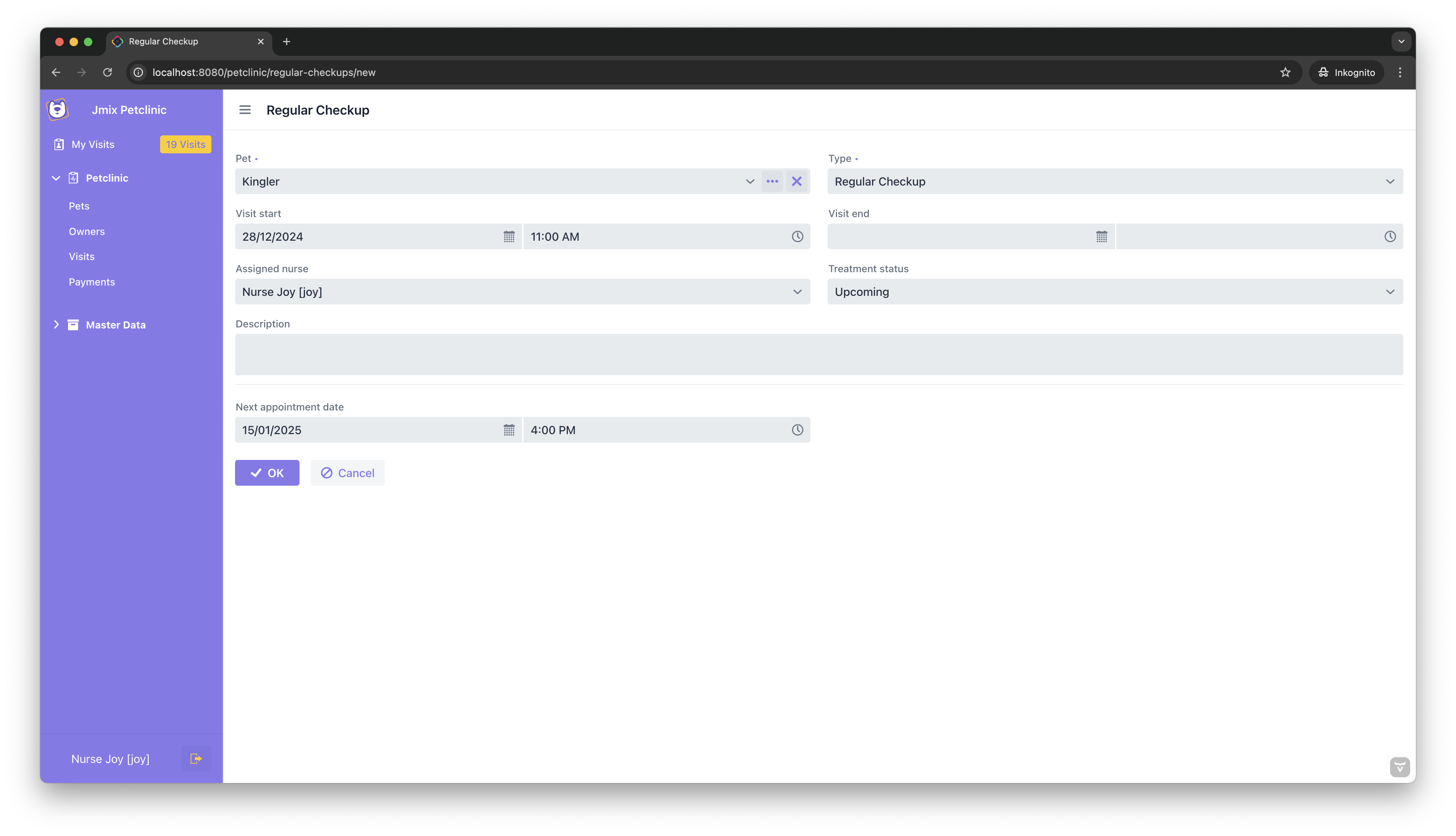 Alternatively, you can start with the base Jmix Petclinic project and follow the step-by-step instructions in this guide to implement the features yourself.